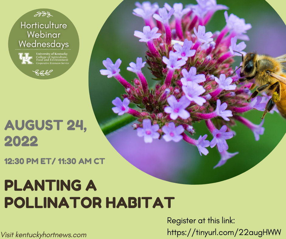 On Wednesday, August 24, the Horticulture Webinar Wednesdays presents a training on Planting Pollinator Habitat with Robert Hoffman of Roundstone Seed The webinar begins at 12:30 pm EST/ 11:30 am CST.